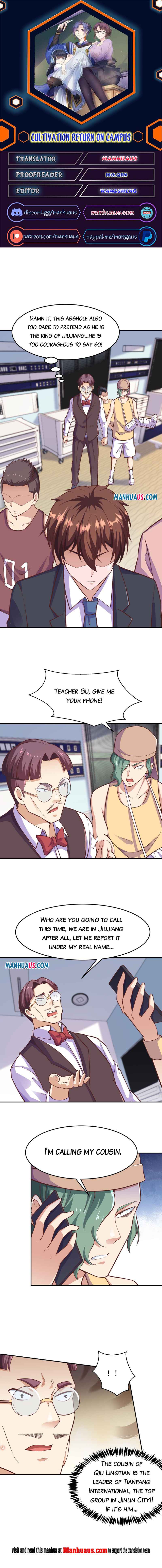 Read the latest manga Cultivation Return on Campus Chapter 291 at ManhuaVerse . Manga Cultivation Return on Campus is always updated at ManhuaVerse . Don't forget to read the other manga updates. A list of manga collections ManhuaVerse is in the Manga List menu.